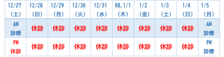 年末年始の診療のご案内