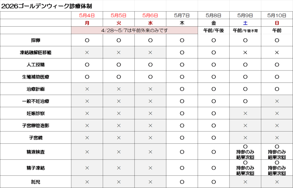 2026年ゴールデンウィーク 診療のご案内
